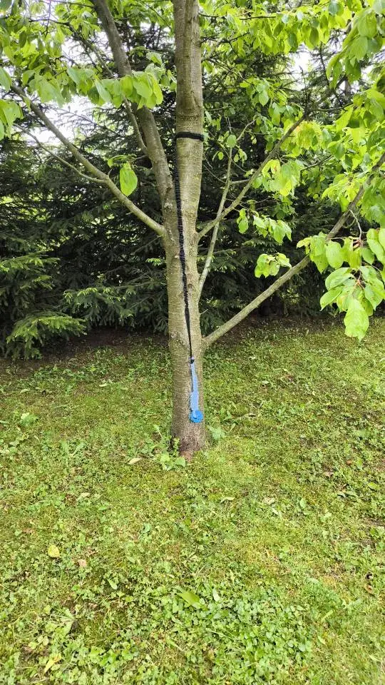 Easy to install indoors — simply attach the strap behind a door to create a fun, self-play station — or hang it outdoors from a tree or beam for an engaging workout session.