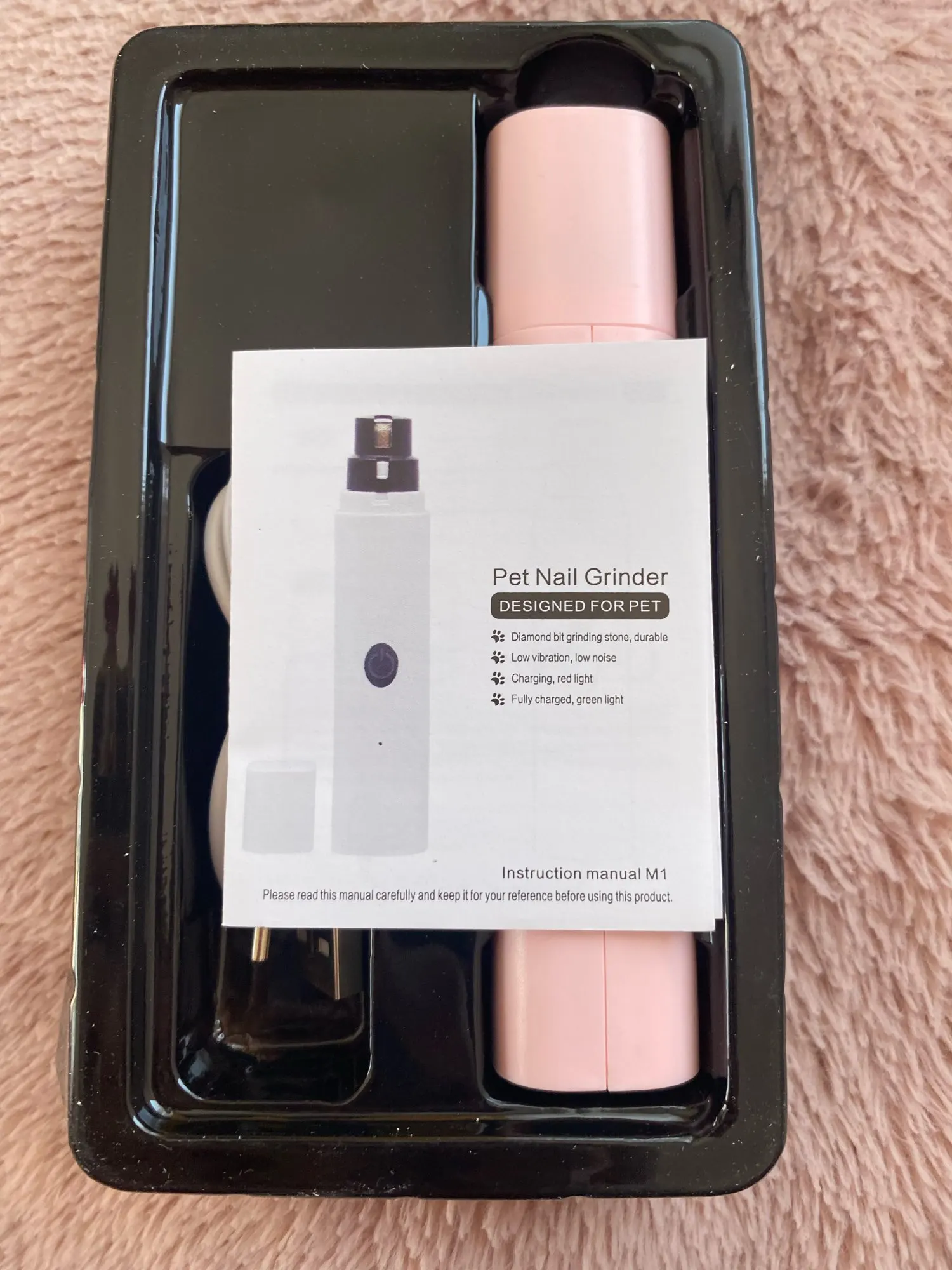 Ariel Armstrong Only the box came a little damaged but still an excellent product, it trims my pet's nails very well, just that it came without a charge so I charged it for a while to try it out and the charge lasted for just two nails. I recommend doing the procedure with gloves, it flies a lot of dust when filing.